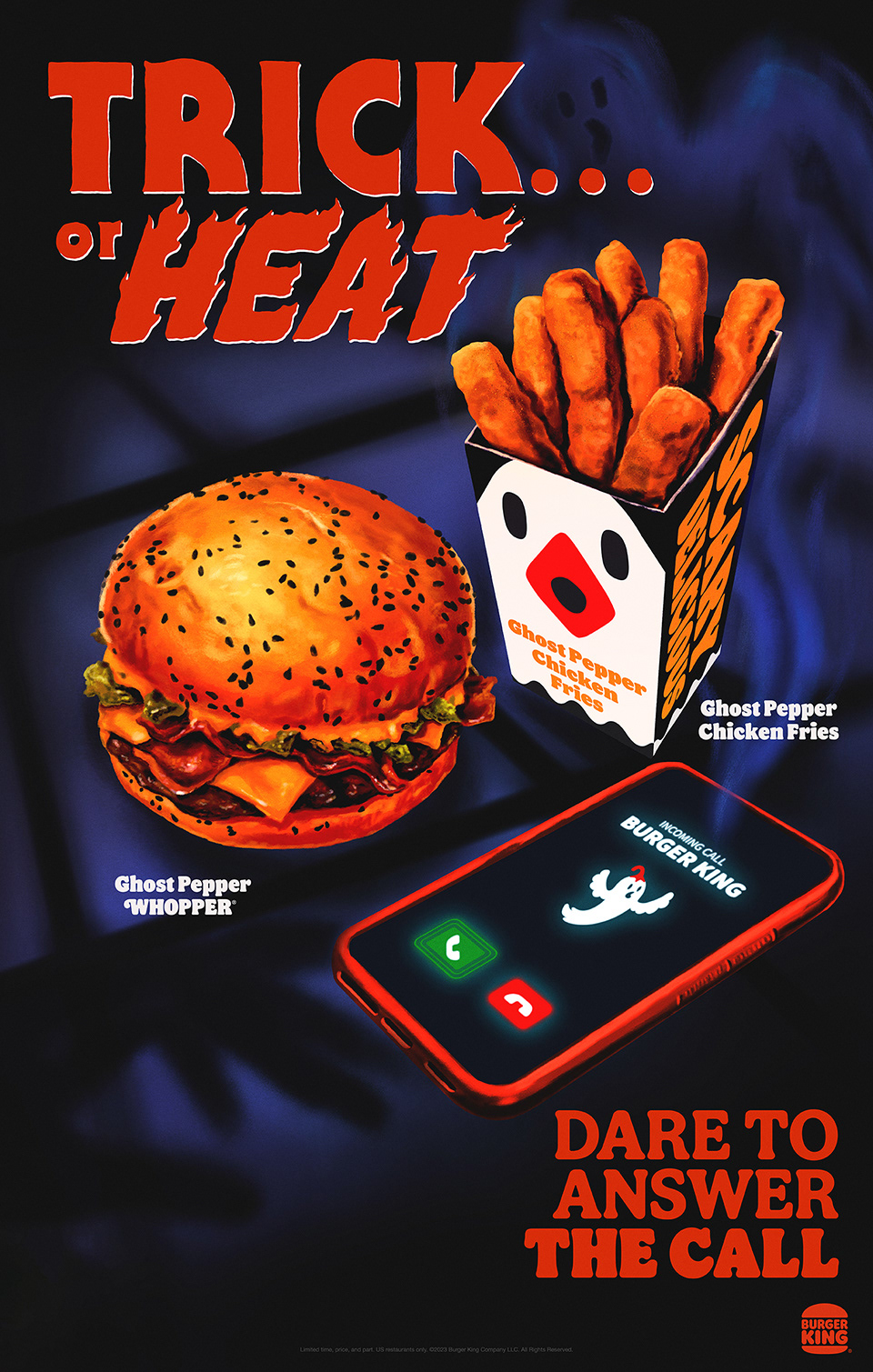 I had the pleasure to illustrate a couple of posters for BK's Ghost Pepper 2023 ad campaign.